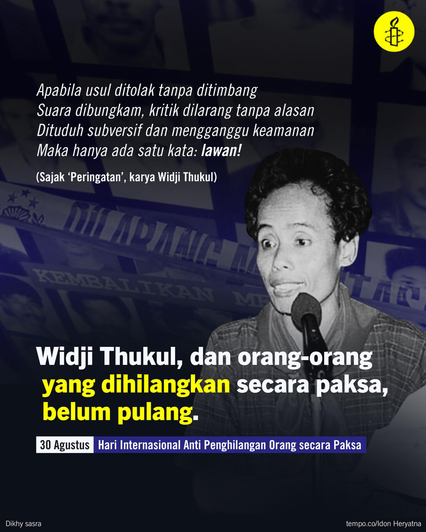 Oleh karena itu, ada seruan agar pemerintah Indonesia #ALLOUT untuk memastikan penyelidikan yang mendalam mengenai semua kasus penghilangan paksa, serta mengakui dan menjelaskan kebenaran mengenai nasib para korban. Selain itu, perlu juga dilakukan ratifikasi terhadap Konvensi Internasional Anti Penghilangan Paksa.