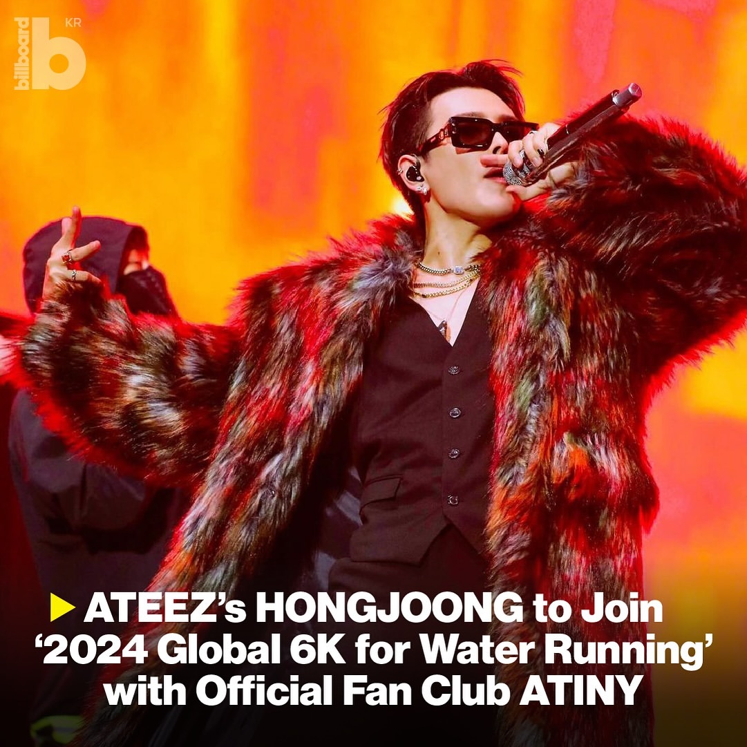 HONGJOONG, anggota boy band ATEEZ, akan berpartisipasi dalam kampanye "2024 Global 6K for Water Running" bersama dengan penggemar resminya, ATINY. Kampanye ini diadakan oleh World Vision, sebuah NGO internasional yang fokus pada bantuan kemanusiaan dan pengembangan. Tujuan dari kampanye ini adalah untuk meningkatkan kesadaran tentang krisis air dan sanitasi yang terjadi di seluruh dunia.
