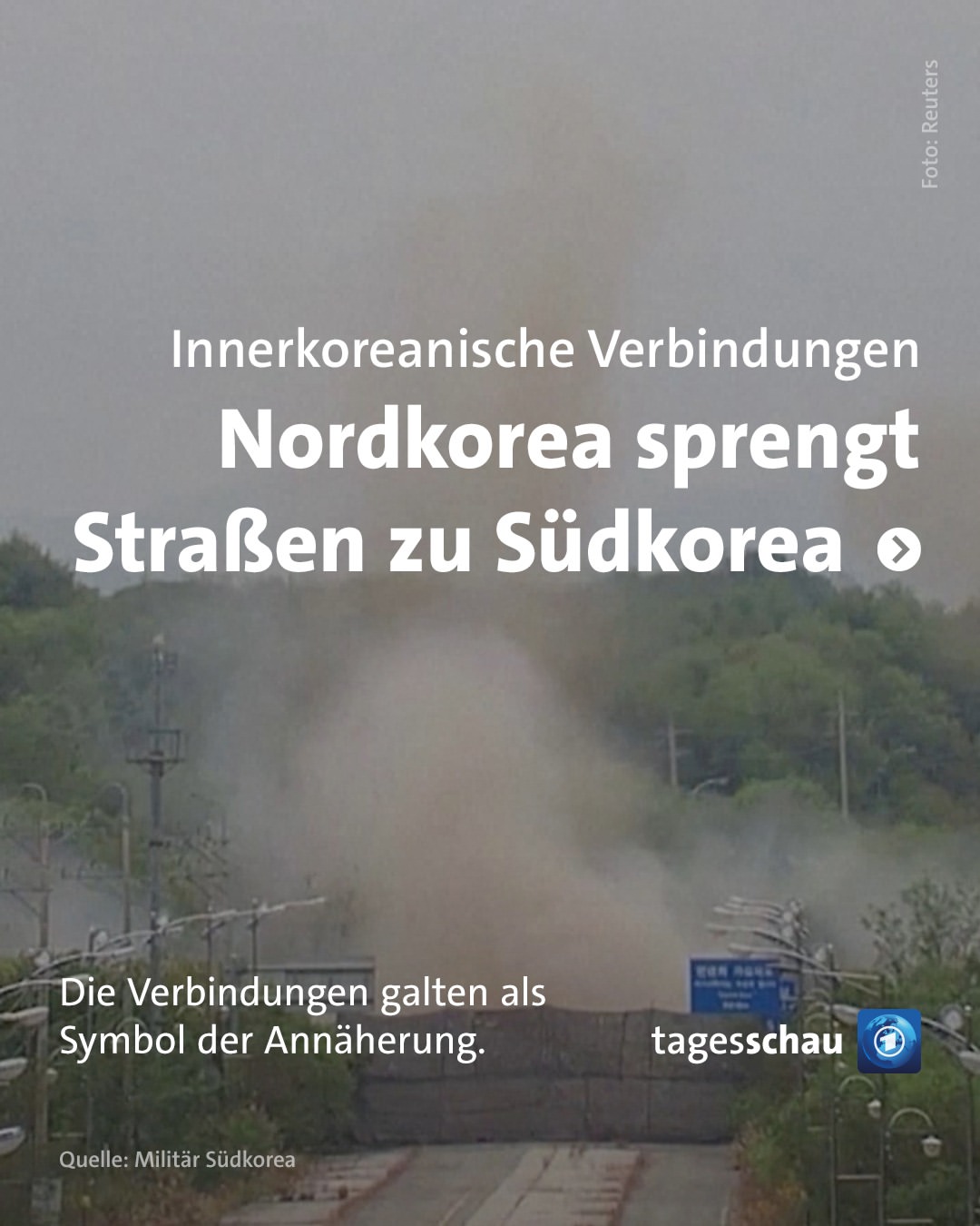 Sebuah video yang dirilis oleh militer Korea Selatan menunjukkan asap mengepul dari lokasi jalan yang dekat dengan kota perbatasan Kaesong. Dalam video tersebut, terlihat juga truk dan ekskavator dari Korea Utara yang sedang membersihkan puing-puing dari jalan yang dihancurkan.