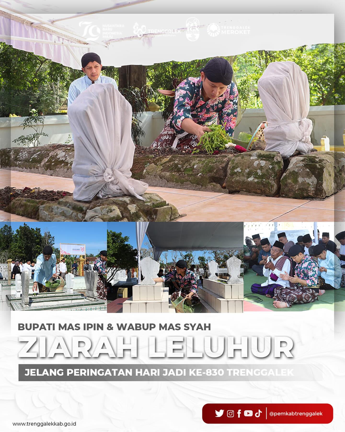 Jelang peringatan Hari Jadi Ke-830 Kabupaten Trenggalek, Bupati Mochamad Nur Arifin bersama Wakil Bupati Syah M. Natanegara dan jajaran Forkopimda melakukan ziarah ke makam para leluhur. Ziarah ini merupakan tradisi rutin setiap tahun yang bertujuan untuk menghormati jasa-jasa para pendahulu dan mendoakan mereka.
