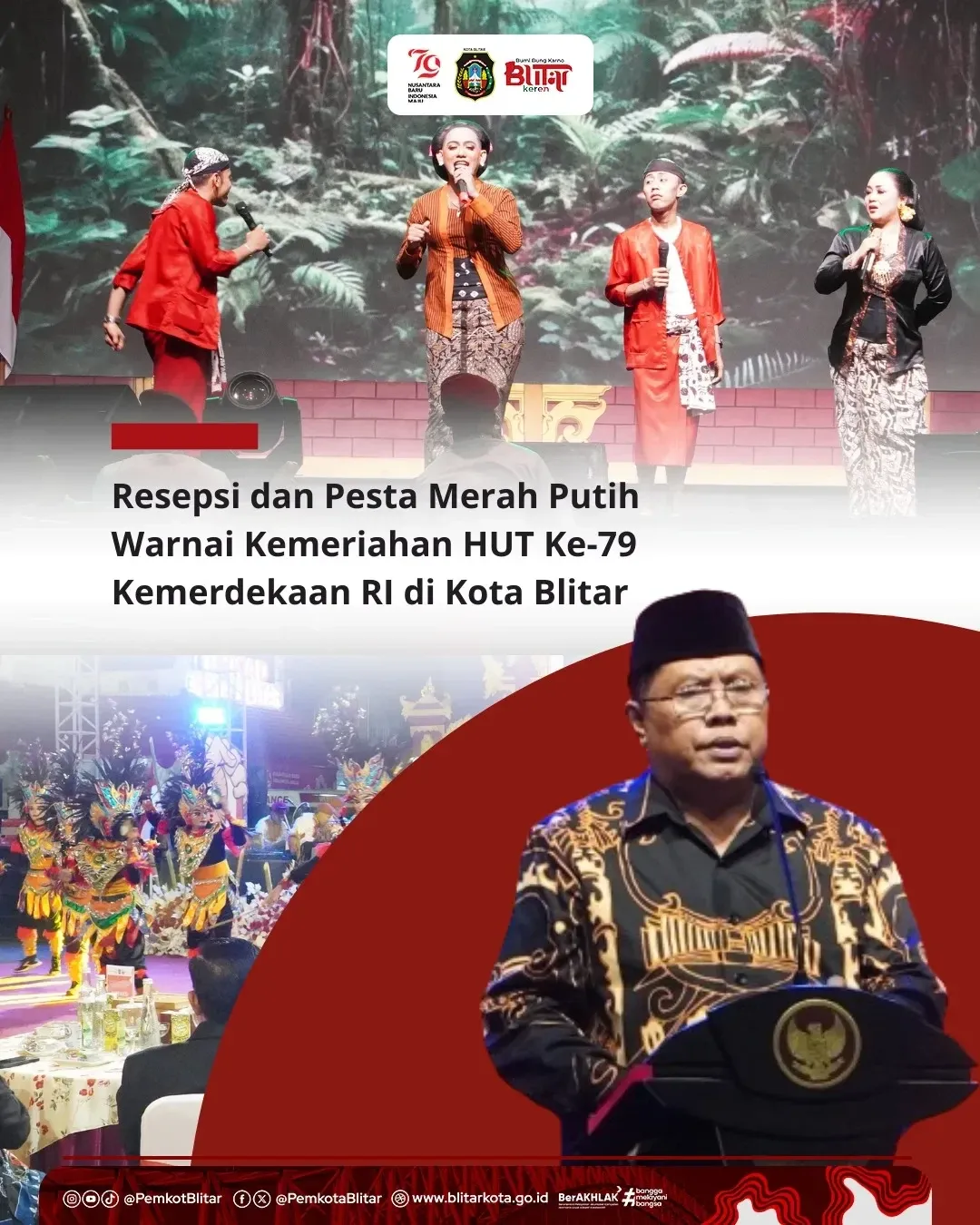 Kota Blitar baru saja menggelar resepsi dan pesta merah putih untuk memperingati Hari Ulang Tahun (HUT) ke-79 Kemerdekaan Republik Indonesia. Acara ini berlangsung pada Kamis malam, 29 Agustus, di halaman kantor Wali Kota Blitar. Wali Kota Blitar membuka acara tersebut dan mengungkapkan rasa syukurnya atas pelaksanaan kegiatan yang meriah dan sukses.
