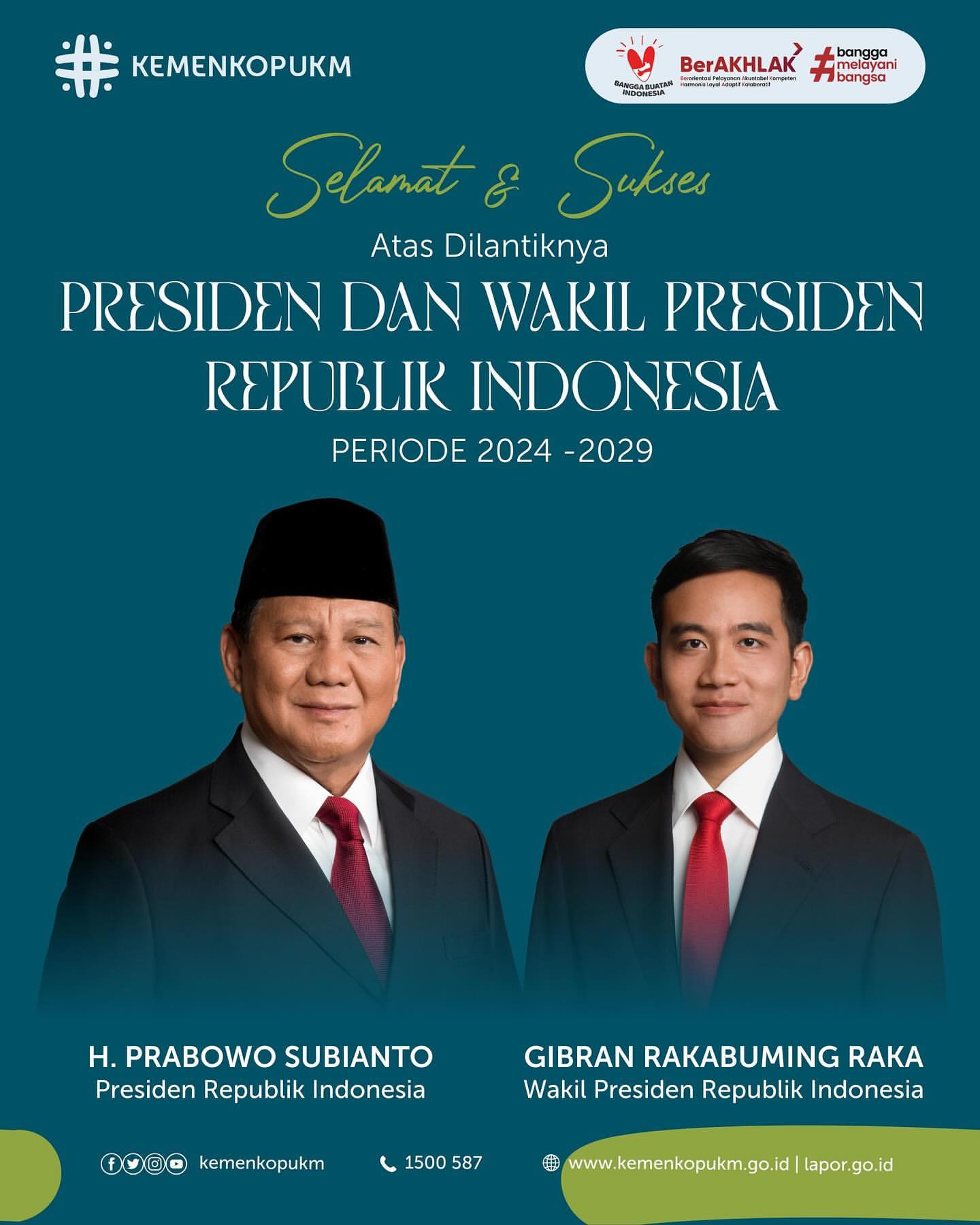Pada tanggal 20 Oktober 2024, H. Prabowo Subianto resmi dilantik sebagai Presiden Republik Indonesia untuk periode 2024-2029. Dalam acara yang berlangsung di Gedung MPR/DPR, Jakarta, Prabowo diambil sumpahnya oleh Ketua Mahkamah Agung. Dalam pelantikan ini, Gibran Rakabuming Raka juga dilantik sebagai Wakil Presiden.
