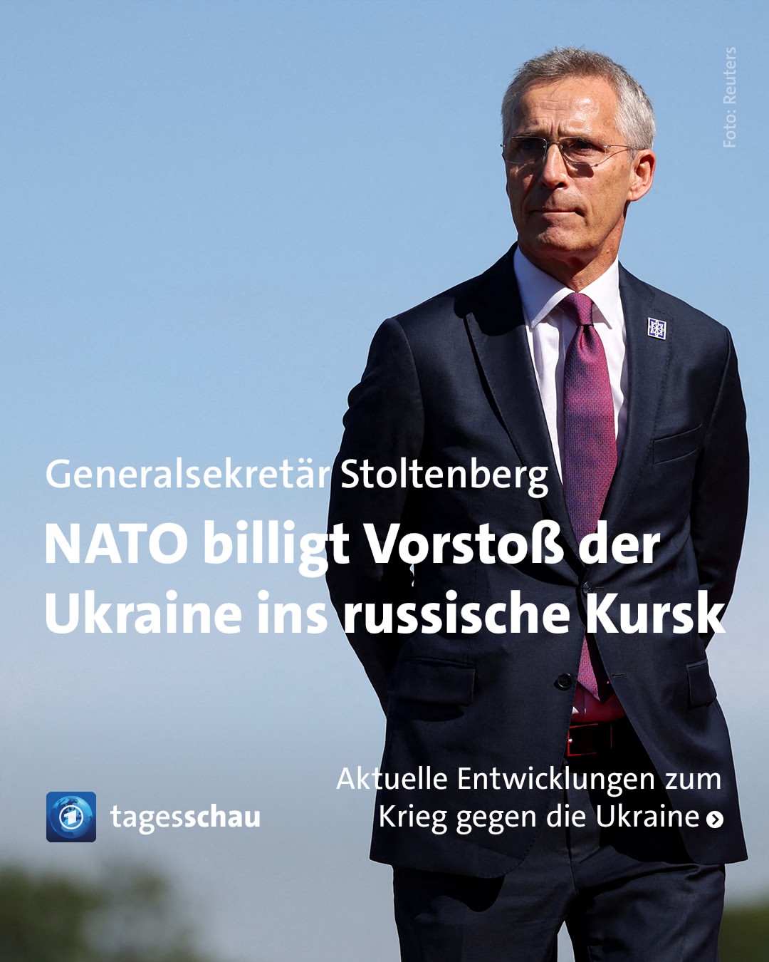 Jens Stoltenberg, Sekretaris Jenderal NATO, menyatakan bahwa tindakan pasukan Ukraina untuk menyerang wilayah Rusia di Kursk adalah tindakan yang sah. Ia menegaskan bahwa Ukraina memiliki hak untuk membela diri. Pernyataannya ini disampaikan dalam sebuah wawancara dengan surat kabar "Welt am Sonntag".