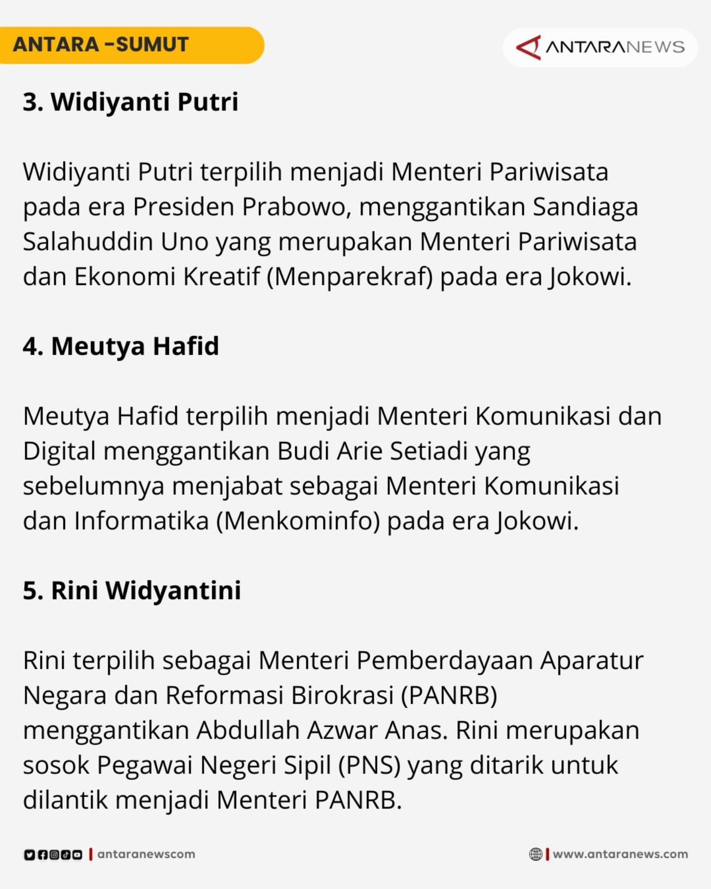 Menteri perempuan Kabinet Merah Putih Prabowo Subianto pemerintahan