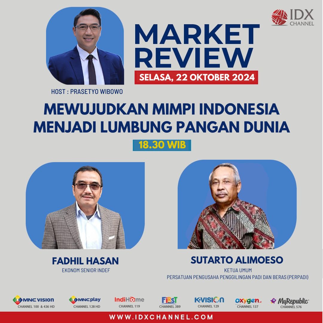 Program dan langkah-langkah untuk mencapai swasembada pangan ini akan dibahas lebih lanjut dalam program Market Review. Program ini akan dipandu oleh Prasetyo Wibowo dan ditayangkan pada Selasa, 22 Oktober 2024, pukul 18.30 hingga 19.00 WIB di IDX Channel.
