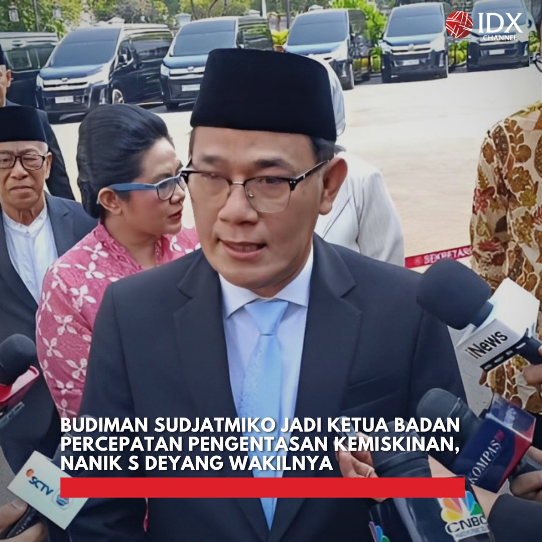 Ketua Badan Percepatan Pengentasan Kemiskinan adalah Budiman Sudjatmiko, seorang mantan politikus dari Partai Demokrasi Indonesia Perjuangan (PDIP). Ia akan didampingi oleh Nanik Sudaryati Deyang sebagai Wakil I Badan tersebut. Pengangkatan mereka tertuang dalam Keputusan Presiden (Keppres) Nomor 145 P Tahun 2024.