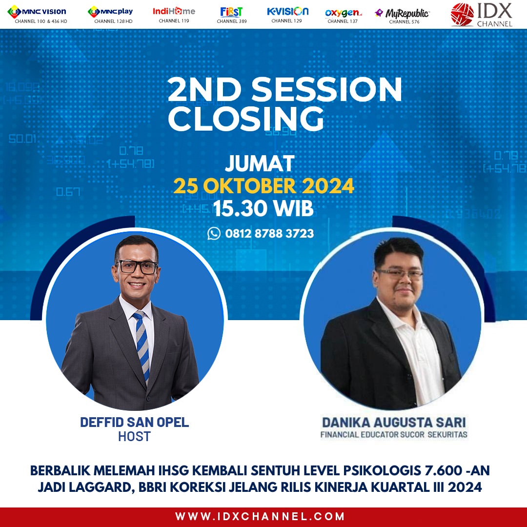 Untuk mengetahui lebih lanjut mengenai pembahasan ini, saksikan pembahasan di IDX 2nd session closing sore ini pada pukul 15:30 WIB, yang dapat disaksikan secara langsung melalui IDX Channel di berbagai saluran seperti MNC VISION, MNC PLAY, INDI HOME, FIRST MEDIA, K-VISION, OXYGEN, dan MY REPUBLIK. Selain itu, Anda juga dapat menyaksikan live streaming di www.idxchannel.com dan aplikasi IDX Channel TV di APPS store.