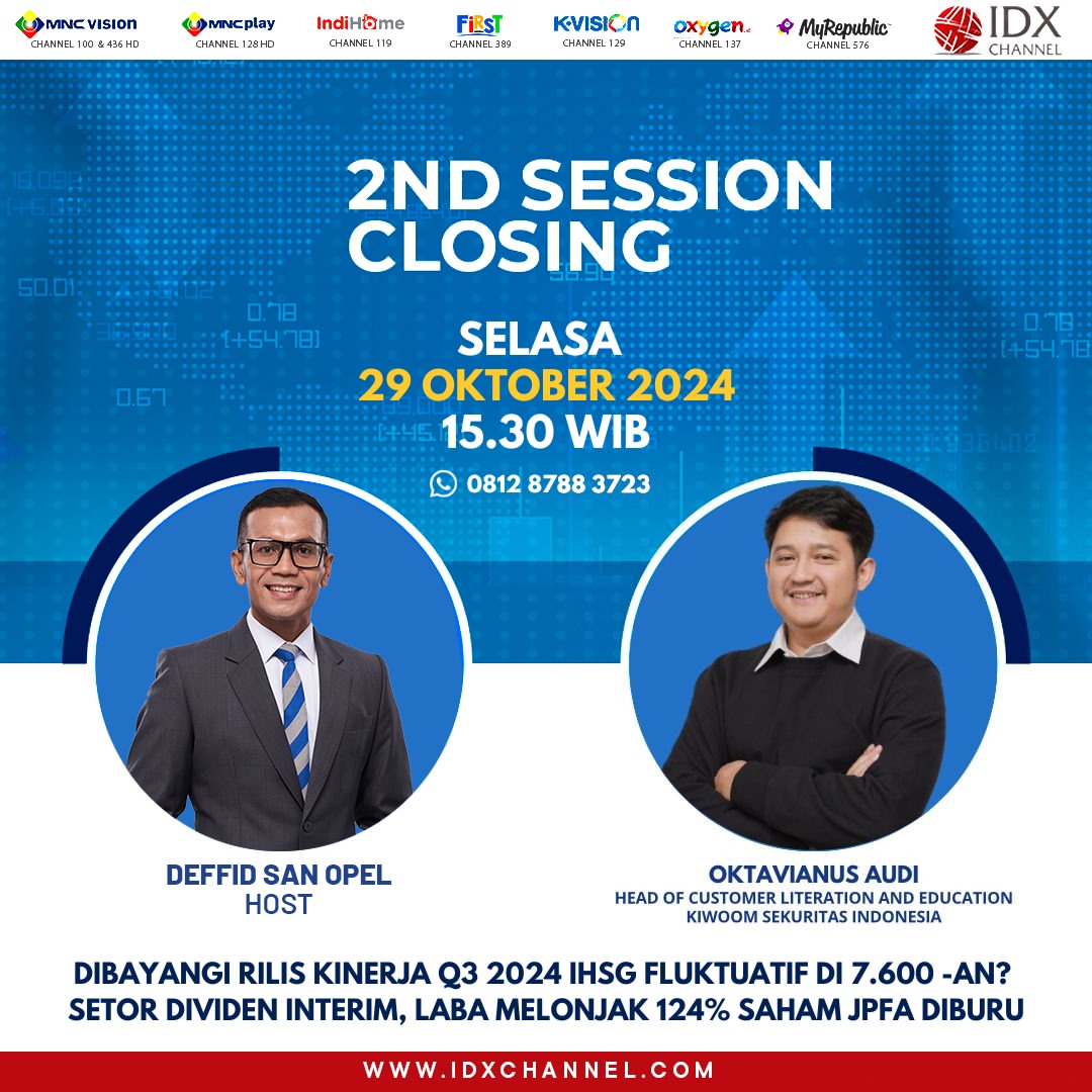 Pembahasan lebih lanjut mengenai hal ini dapat disaksikan pada siaran IDX 2nd session closing yang akan berlangsung sore ini pukul 15:30 WIB. Siaran ini dapat diakses secara langsung melalui IDX Channel di MNC VISION Channel 100, MNC PLAY Channel 128 HD, INDI HOME Channel 119, FIRST MEDIA Channel 389, K-VISION Channel 129, OXYGEN Channel 137, dan MY REPUBLIK Channel 576. Selain itu, pemirsa juga dapat menyaksikan siaran langsung melalui www.idxchannel.com dan aplikasi IDX Channel TV yang tersedia di APPS store.