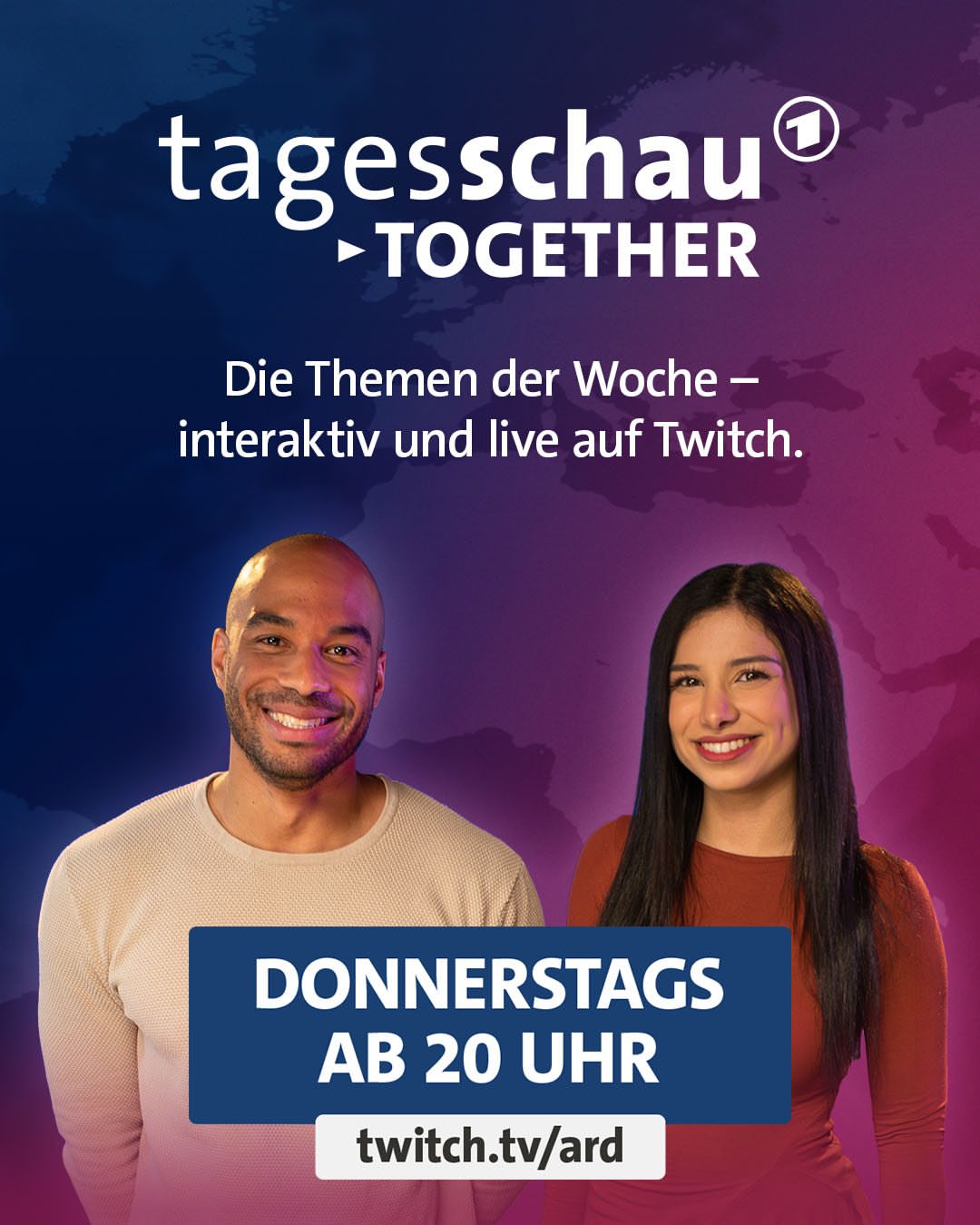Setiap Kamis malam, pemirsa diundang untuk bergabung dalam acara live interaktif bernama 'tagesschau together' yang disiarkan di platform Twitch. Acara ini dimulai pada pukul 20.00 WIB dan bertujuan untuk membahas berbagai berita penting dari dunia politik, masyarakat, dan isu-isu yang sedang hangat diperbincangkan dalam komunitas.